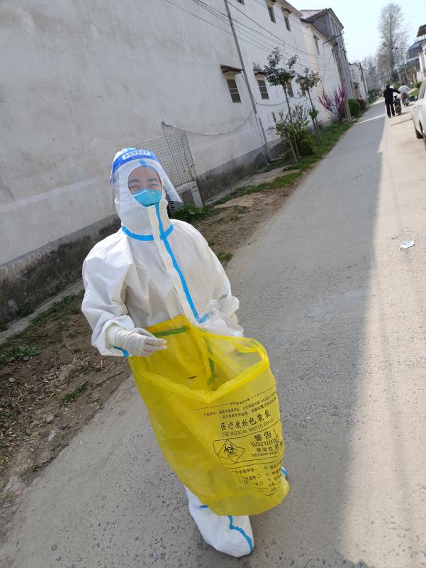 許夢蝶她們?nèi)サ拇宸稚⑤^廣,從凌晨開始一個(gè)村挨一個(gè)村地跑下去,汗水很快濕透防護(hù)服,一般到下午2點(diǎn),前來采樣的村民會(huì)逐漸變少,但是饑腸轆轆的她卻不能就餐,因?yàn)榕紶栠€會(huì)有村民過來采樣,如果脫下再穿防護(hù)服肯定會(huì)耽擱村民的時(shí)間,“我們本來就是為人民服務(wù)的,我們等等無所謂,不能讓老百姓來等我們”,許夢蝶當(dāng)時(shí)這樣想著,然后婉拒了工作人員的就餐邀請,等沒有村民來采樣了再休息。她們吃完飯與大部隊(duì)集合的路上,突然隊(duì)長接到鄉(xiāng)長的電話說人手不夠讓回去采集封控村,她們立刻掉頭回去,沒有任何怨言,沒有任何要求。到了以后工作人員通知說這個(gè)村500多人要入戶采集,她們立即穿上防護(hù)服就開始了工作,和村干部及志愿者相互配合,拿著未集中核酸采樣的群眾名單,不停穿梭在村里的大街小巷、房前屋后、床邊炕頭進(jìn)行現(xiàn)場核酸采樣。臨走時(shí)叮囑群眾日常防護(hù)不能大意,勤洗手、勤消毒、戴口罩,卻忘記了我們自己已經(jīng)濕透的衣服還有灌鉛似的雙腿……