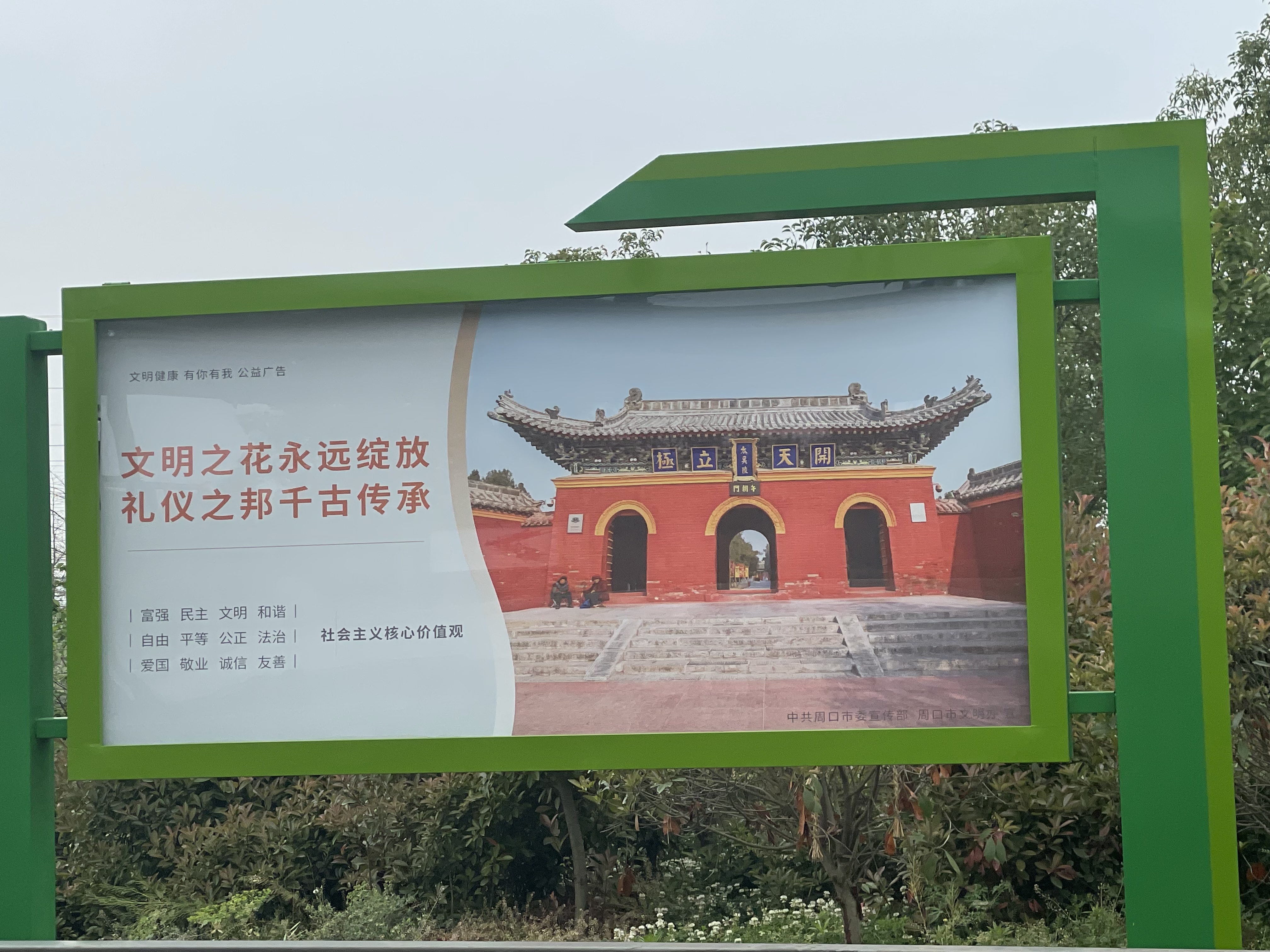 公益廣告是傳遞文明的重要載體,行走在我市的大街小巷,“富強、民主、文明、和諧……”“道德名城、魅力周口”“保護生態(tài)環(huán)境,共建美好家園”……近日,細心的您如果從我市中心城區(qū)走過,隨處都可看到的是弘揚社會主義核心價值觀、倡導文明守禮、文明旅游等形式多樣的公益廣告,內(nèi)容、色調(diào)與周圍城市景觀風貌有機融合,點滴之處,彌漫著激情蓬勃的文明力量,實現(xiàn)生態(tài)文明與精神文明建設有機結合、相得益彰,而點綴在道路兩側、廣場游園里的主題小品雕塑,則是將公益宣傳融入到景觀中,凸顯時代特色。方寸之間,透露出向上向善的新風美德,讓文明觀念在一點一滴中深入人心,讓人看后倍感溫馨。