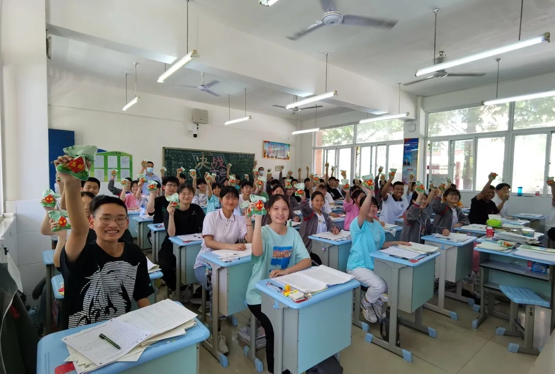 小小粽子,深深情誼。同學(xué)們接過粽子,滿懷感恩,臉上洋溢著喜悅的笑容。老師們還將粽子掛在教室門口,同學(xué)們離開教室時輕快跳起,用頭頂粽子,寓意“一定高中”,中午就餐時間,熱氣騰騰的粽子讓同學(xué)們通過舌尖上的美味感知傳統(tǒng)文化魅力,在愉悅的氛圍中煥發(fā)昂揚斗志,實踐青春誓言。