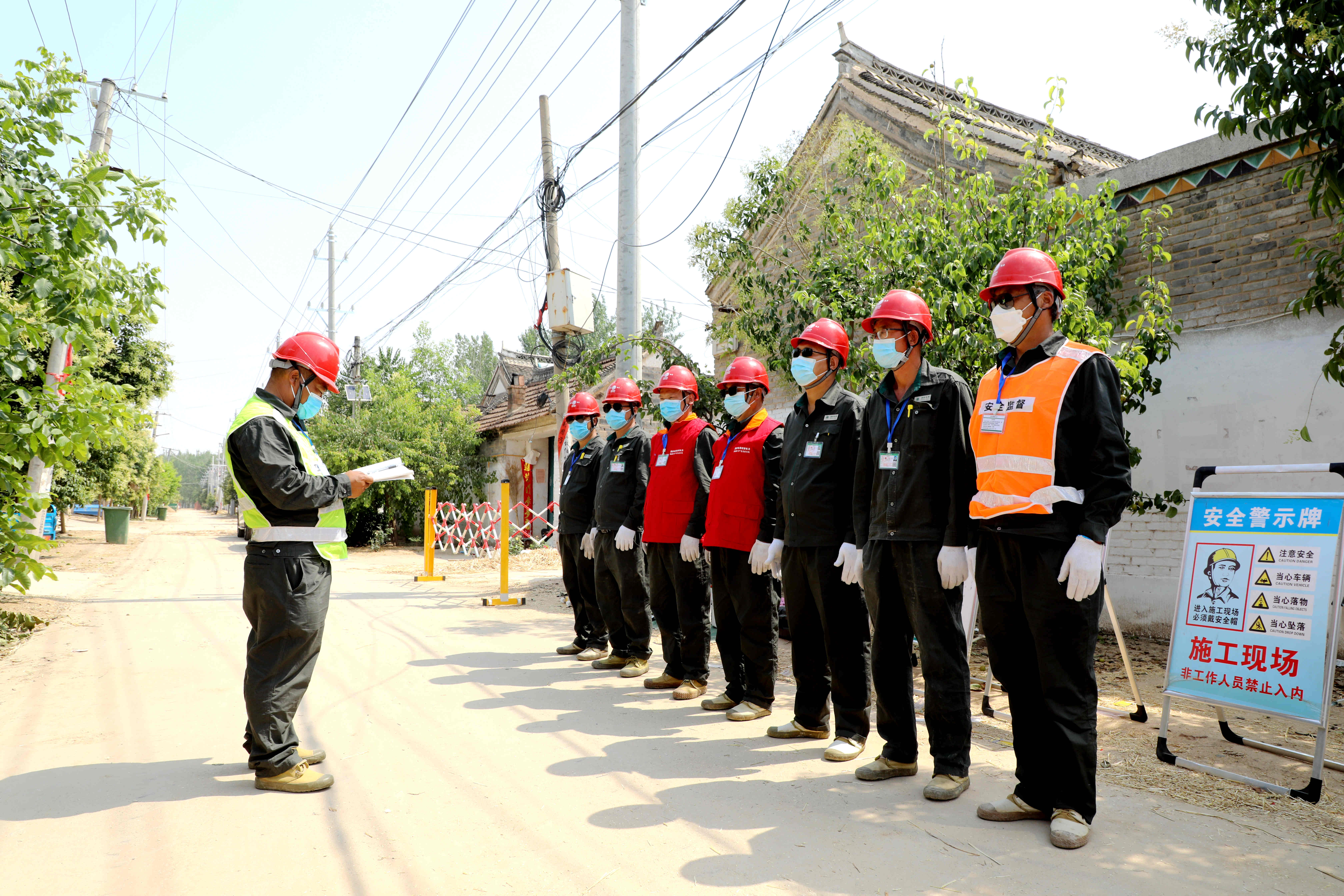 6月9日,在西華縣皮營鄉(xiāng)齊莊行政村潭張1號臺區(qū)施工現(xiàn)場,國網(wǎng)西華縣供電公司組織焦裕祿共產(chǎn)黨員服務隊帶領(lǐng)施工人員分工協(xié)作、高效配合,安裝電表箱、更換下戶線、增容變壓器、新建低壓線路。