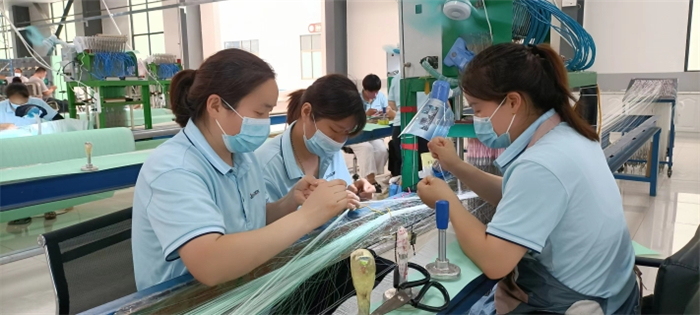 圍繞百億級裝備制造業(yè)產(chǎn)業(yè)集群發(fā)展,提升裝備制造業(yè)科技研發(fā)創(chuàng)新能力。以加快晶鑫科技上市為引領(lǐng),推動傳統(tǒng)企業(yè)整體轉(zhuǎn)型升級。晶鑫科技產(chǎn)業(yè)園內(nèi)綠意盎然,高大寬敞的廠房內(nèi)工人們在各自崗位上有條不紊地忙碌著。拉絲車間,一臺大型編織機(jī)械靜靜地運轉(zhuǎn)。機(jī)械的一頭,只有一名技術(shù)人員在操控臺上注視著屏幕。工廠負(fù)責(zé)人說,這是剛安裝調(diào)試不久的一臺進(jìn)口機(jī)器,自動化程度和生產(chǎn)效率特別高,全國也沒有幾臺。編織車間,來自卞路口鄉(xiāng)董營行政村的馬杰正在熟練地操作著一臺編織機(jī)。晶鑫科技辦公室工作人員李文玲說,那臺機(jī)器也是進(jìn)口設(shè)備,技術(shù)含量很高,只有業(yè)務(wù)精湛的工人才能操作。馬杰笑著說,由于她操作的機(jī)器先進(jìn)、技術(shù)要求高,工資也比一般人員要高出許多。來自北城街道辦事處的編制工周福榮,按計件每月也能拿到6000元左右的工資。晶鑫科技負(fù)責(zé)人說,由于疫情防控原因,部分外銷產(chǎn)品出口受到影響,但他們的產(chǎn)品在市場上仍是供不應(yīng)求。