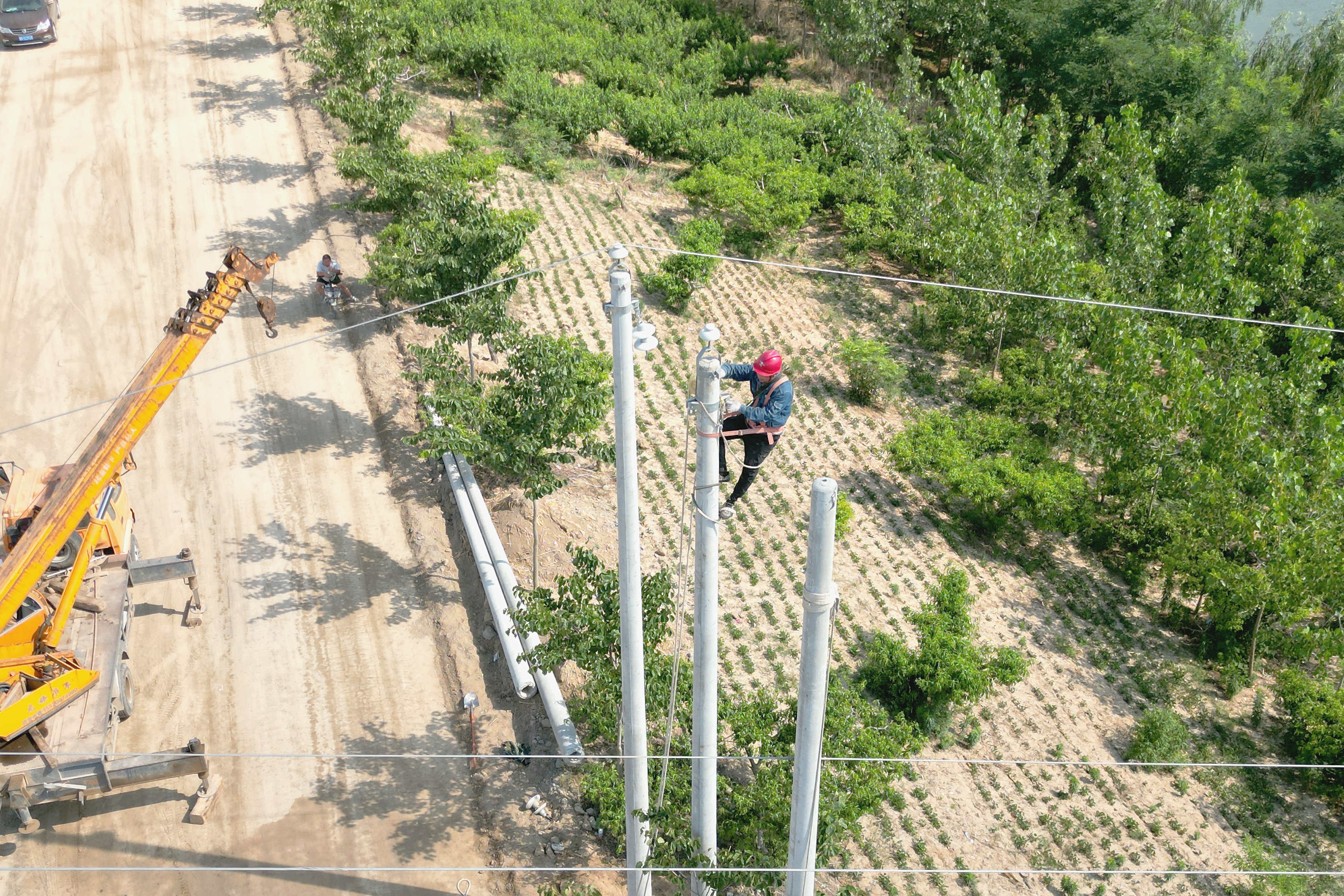 6月13日11時(shí),天氣格外晴朗,烈日下氣溫突破38攝氏度。西華縣黃橋鄉(xiāng)潁河河堤上一片忙碌的景象,該縣供電公司搶修人員正在烈日下緊張有序地忙活著。