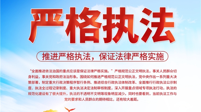“全面依法治國的重點應(yīng)該是保證法律嚴(yán)格實施?!眹?yán)格規(guī)范公正文明執(zhí)法,事關(guān)人民群眾切身利益,事關(guān)黨和政府法治形象。