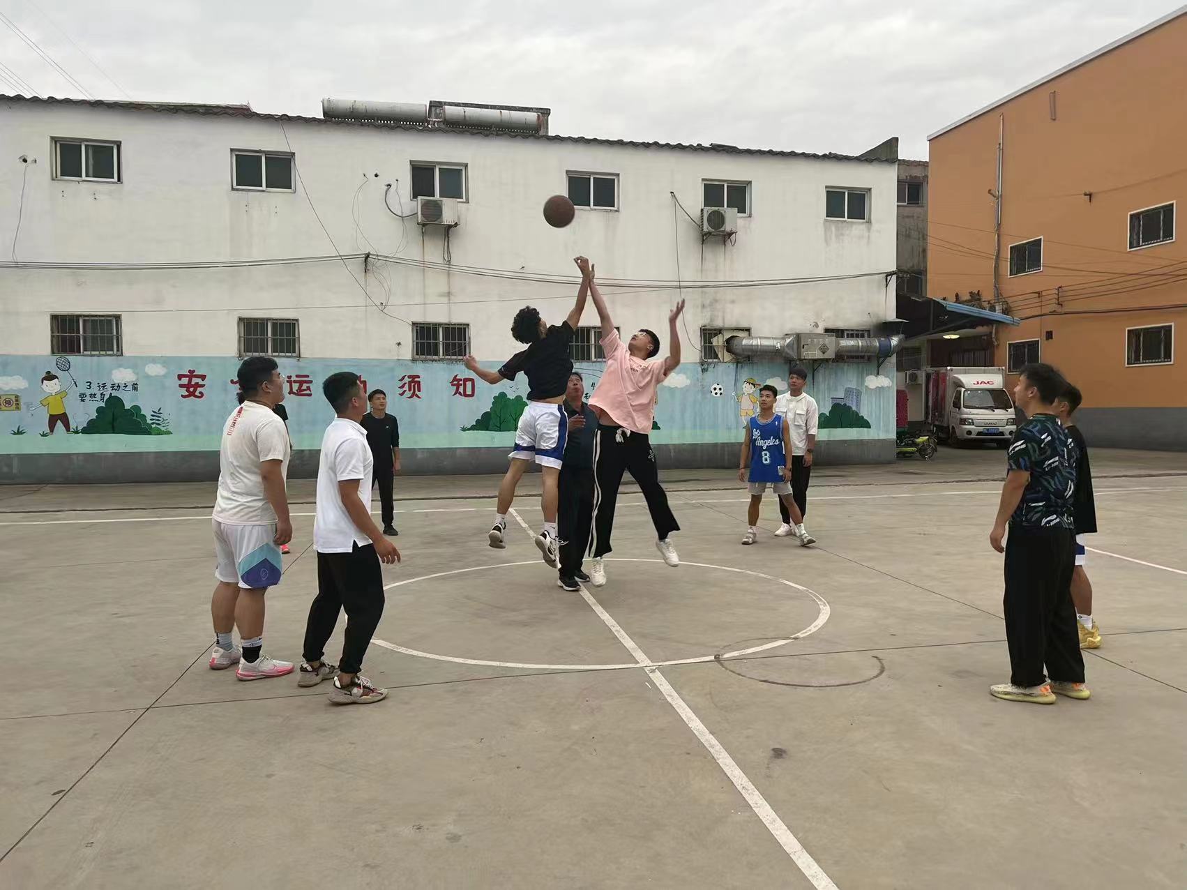 淮河路辦事處社區(qū)干部和周口技師學(xué)院的老師們?cè)谫悎?chǎng)上揮汗如雨、你爭(zhēng)我奪,比賽緊張而熱烈。雙方隊(duì)員拼搶積極,防守嚴(yán)密,既有遠(yuǎn)投的三分,跨步飛躍的上籃;又有穿插籃下精巧的勾手,還有忽左忽右轉(zhuǎn)身帶球的突破。一場(chǎng)籃球賽充分展示了籃球運(yùn)動(dòng)的魅力,賽出了團(tuán)結(jié)和友誼,展現(xiàn)了不言放棄、奮力拼搏的精神,也體現(xiàn)了籃球運(yùn)動(dòng)的廣泛群眾基礎(chǔ)。