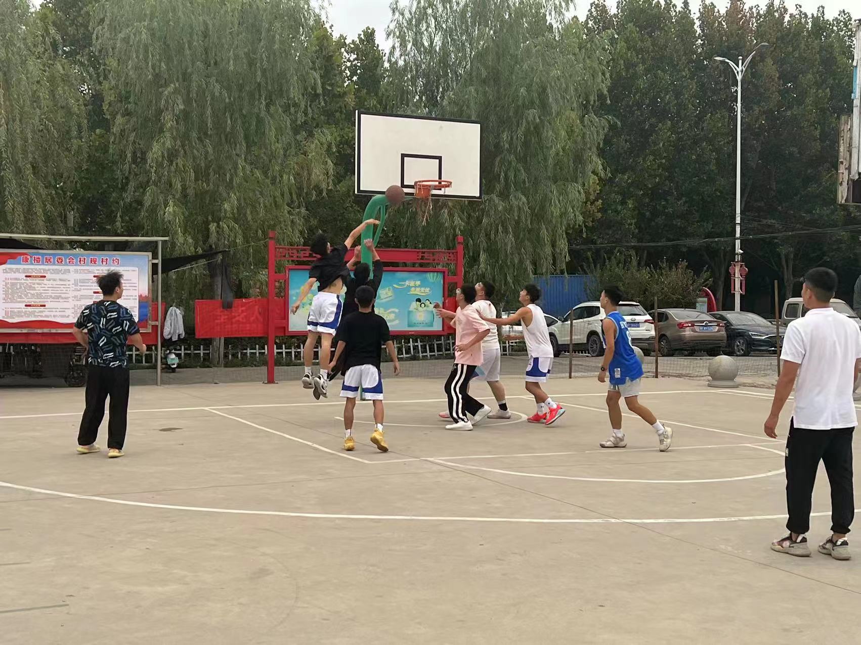 9月20日下午,開發(fā)區(qū)淮河路辦事處康樓居委會(huì)廣場(chǎng)上喊聲如潮,這里正在進(jìn)行淮河路辦事處聯(lián)合周口技師學(xué)院的籃球友誼賽。