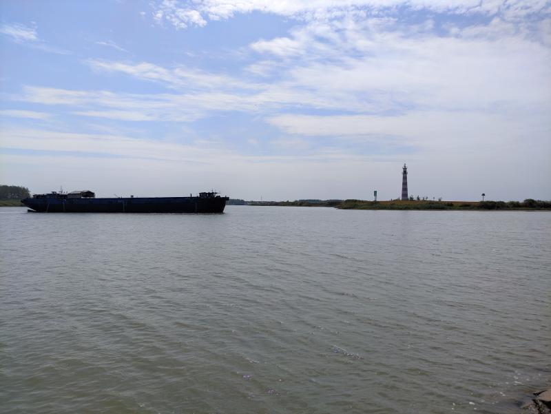 9月21日19時(shí)許,豫貨出海、“周”向世界——周口六條貨運(yùn)集裝箱航線大型異地采訪活動(dòng)采訪組一行在堤岸下的農(nóng)田中穿行,終于到達(dá)沫河口?;璋档囊股?,采訪組成員望著寬闊的河道,隱隱如山的貨輪伴著引擎的轟鳴聲緩緩駛過(guò),僅有的點(diǎn)點(diǎn)燈光來(lái)自對(duì)岸海事部門(mén)的檢查站。沫河口岸邊,一些房屋久棄不用,黑洞洞的窗口像一張張大嘴,仿佛在訴說(shuō)著村莊久遠(yuǎn)的歷史。