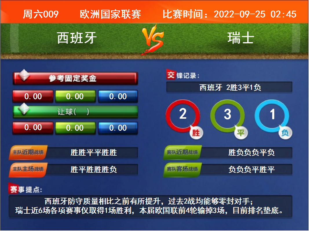 周六009  歐洲國家聯(lián)賽 西班牙VS瑞士