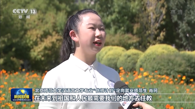 北京師范大學(xué)漢語言文學(xué)專業(yè)“優(yōu)師計(jì)劃”定向就業(yè)師范生 肖珂:總書記勉勵我們增長傳道授業(yè)解惑本領(lǐng),在未來到祖國和人民最需要我們的地方去任教。我定不負(fù)囑托,努力學(xué)習(xí),在畢業(yè)后回到我的家鄉(xiāng)。