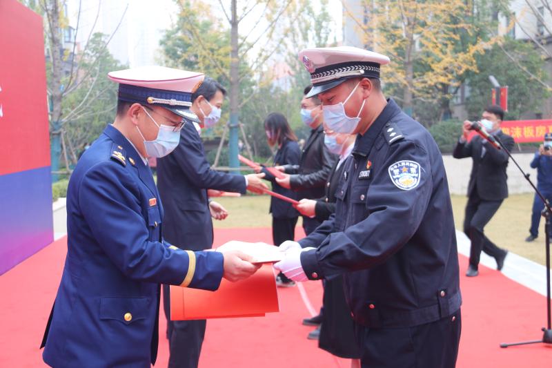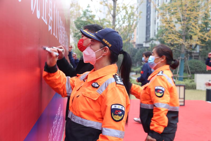 啟動(dòng)儀式上,社區(qū)居民、民間救援人員等在宣傳墻上簽字,沈丘縣相關(guān)領(lǐng)導(dǎo)還為消防大隊(duì)聘任的4名消防宣傳形象大使頒發(fā)了聘任證書(shū)。