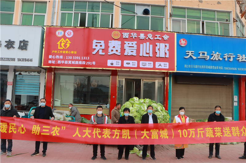 冬日暖陽(yáng),愛(ài)意融融。12月7日,河南省西華縣人民醫(yī)院、中醫(yī)院、敬老院的院子里,掌聲陣陣,笑語(yǔ)歡聲,洋溢著溫馨、祥和的氣氛?!爸袊?guó)好人”、周口市人大代表方凱幫助黃橋鄉(xiāng)菜農(nóng)解決蔬菜滯銷難題,并通過(guò)西華縣紅十字會(huì)向這些單位捐贈(zèng)10萬(wàn)斤蔬菜,讓滯銷菜變“暖心菜”。方凱的這一舉動(dòng),受到群眾的稱贊。