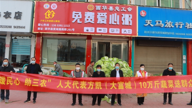 “中國好人”、周口市人大代表方凱幫助黃橋鄉(xiāng)菜農(nóng)解決蔬菜滯銷難題,并通過西華縣紅十字會(huì)向這些單位捐贈(zèng)10萬斤蔬菜,讓滯銷菜變“暖心菜”。方凱的這一舉動(dòng),受到群眾的稱贊。