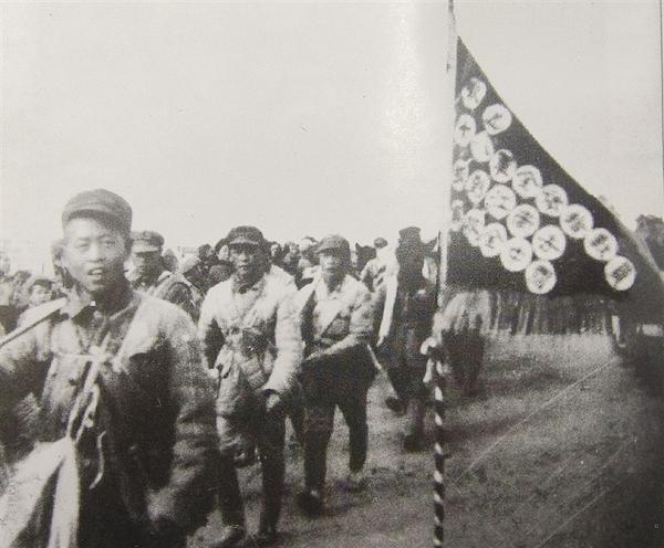 十八軍部隊揮師南下,受到沿途人民群眾的熱烈歡迎。圖為安徽阜陽人民向部隊贈送的錦旗。