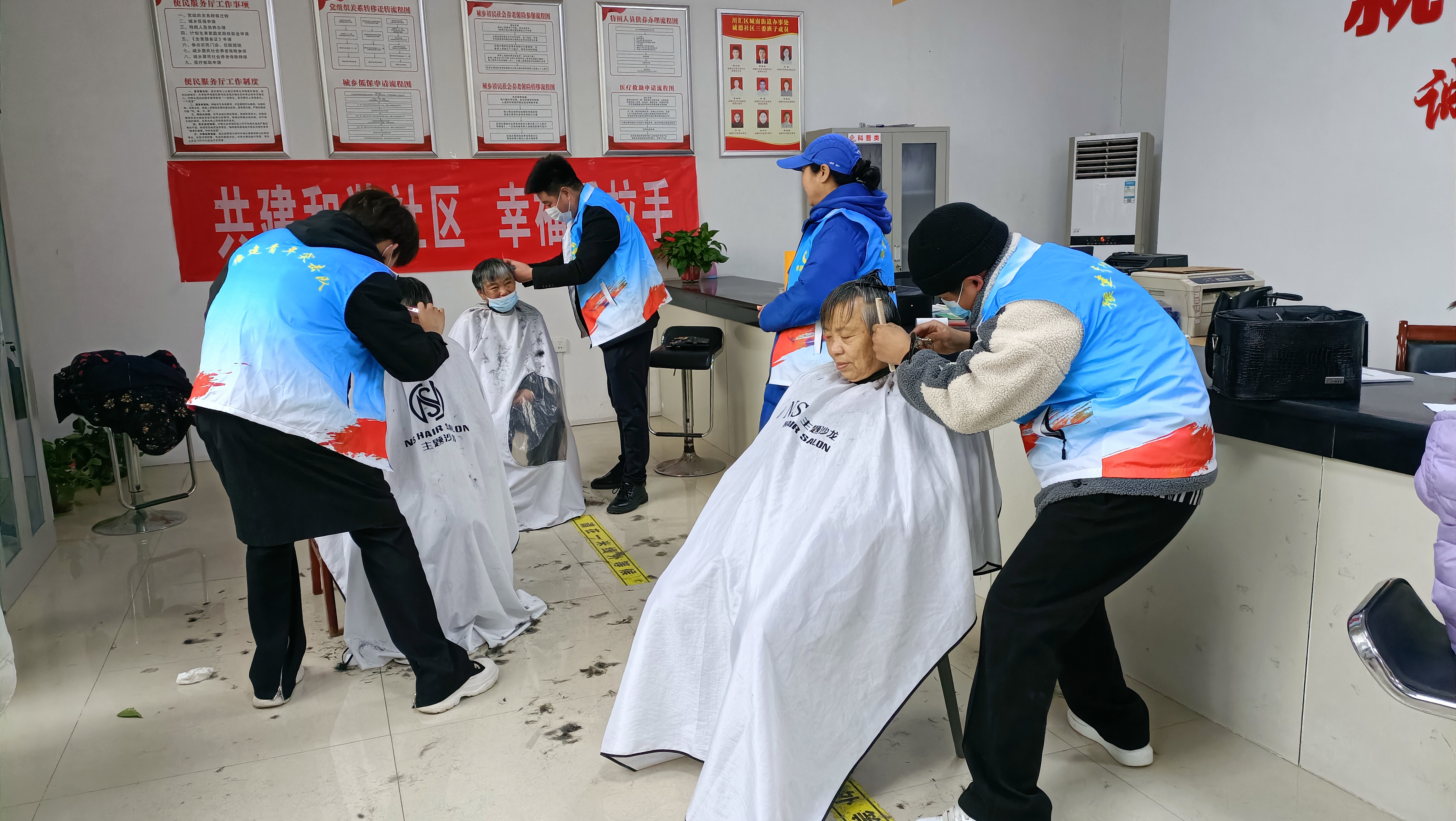 志愿者們一邊為老人們剪著頭發(fā),一邊陪老人們聊聊天、拉拉家常??粗敉旰蟮陌l(fā)型,老人們樂得合不攏嘴,一直將“謝謝”掛在嘴邊,紛紛表示在社區(qū)服務站就能剪一個清爽滿意的發(fā)型,真是太好了。居民李婆婆表示自己出入需要輪椅,想外出理發(fā)很不方便,志愿者們此舉為她解決了個大難題。