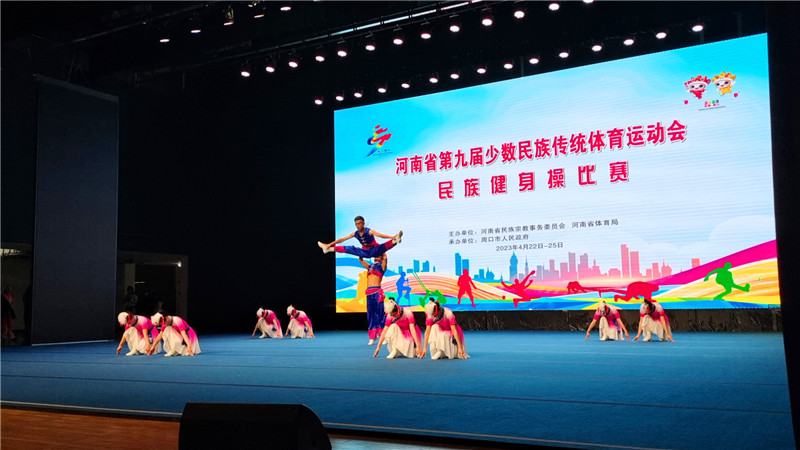 4月25日上午11時(shí),在申鳳梅藝術(shù)中心,隨著競(jìng)賽套路第二輪比拼的結(jié)束,第九屆全省民族運(yùn)動(dòng)會(huì)民族健身操項(xiàng)目圓滿收官。