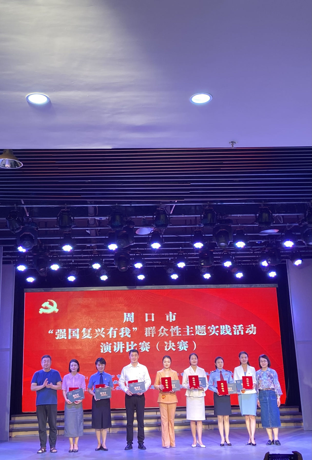 決賽過程中,選手立足中國式現(xiàn)代化全面推進中華民族偉大復(fù)興的廣闊征程, 以各自學(xué)習(xí)、工作、生活為視角,以微故事、微黨課、微講述為主要方式,用飽滿的熱情講述了學(xué)習(xí)宣傳貫徹黨的二十大精神的個人感悟、具體實踐;講述了錨定“兩個確?!?,實施 “ 十大戰(zhàn)略”,推進中國式現(xiàn)代化周口實踐的實際行動;講述了繁榮發(fā)展文化事業(yè),深入實施文旅文創(chuàng)融合戰(zhàn)略周口實踐之“我”的認識。選手們情感充沛、慷慨激昂,“強國有我 請黨放心”的口號鏗鏘有力,響徹劇場,展示了一代周口青年奮力譜寫中國式現(xiàn)代化周口絢麗篇章的信心和決心。
