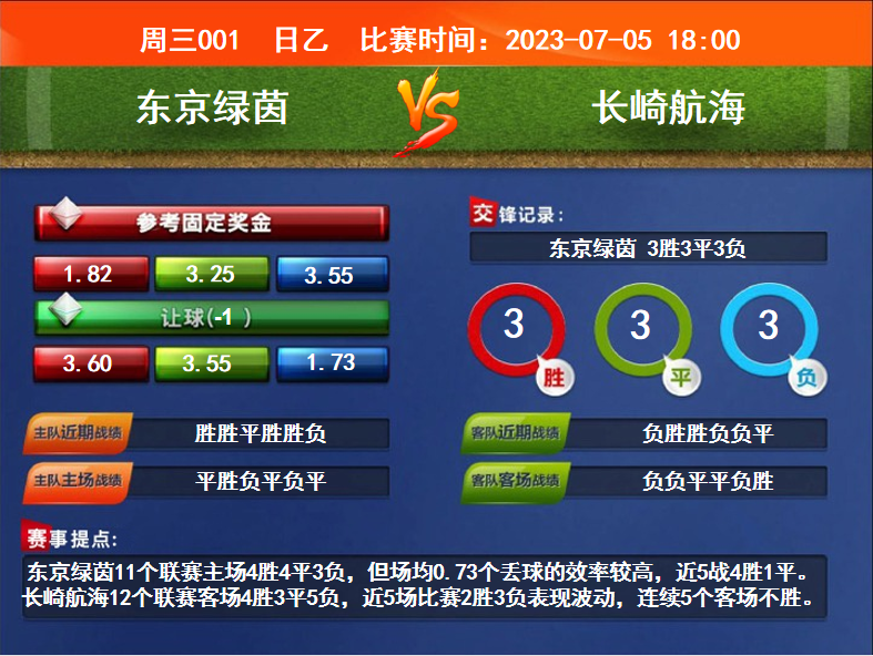 比賽時(shí)間:2023-07-05 18:00賽事提點(diǎn):東京綠茵11個(gè)聯(lián)賽主場4勝4平3負(fù),但場均0.73個(gè)丟球的效率較高,近5戰(zhàn)4勝1平。長崎航海12個(gè)聯(lián)賽客場4勝3平5負(fù),近5場比賽2勝3負(fù)表現(xiàn)波動(dòng),連續(xù)5個(gè)客場不勝。