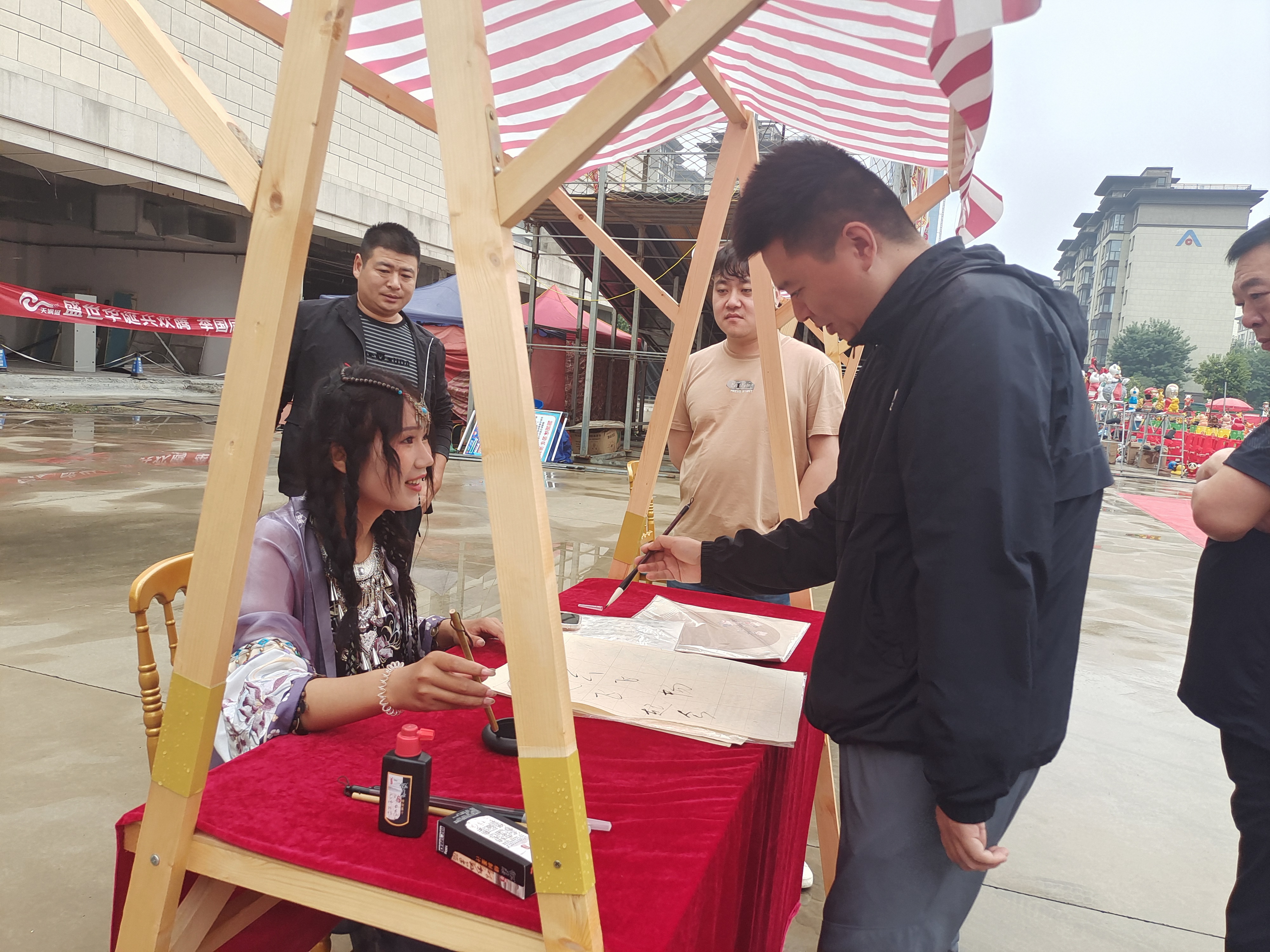 伴隨著開(kāi)場(chǎng)舞《盛世歡歌》,“潮流雙節(jié)·中秋游園會(huì)暨國(guó)慶嘉年華”活動(dòng)啟動(dòng)儀式正式拉開(kāi)帷幕。泥泥狗、剪紙、書法、繪制團(tuán)扇……現(xiàn)場(chǎng)工作人員有的身著少數(shù)民族服裝,有的身著漢服,用親手制作的方式展示著傳統(tǒng)非物質(zhì)文化遺產(chǎn)獨(dú)有的韻味,吸引著來(lái)往的大人小孩駐足。有的甚至親自參與制作,捏泥泥狗、寫毛筆字、畫傳統(tǒng)團(tuán)扇……現(xiàn)場(chǎng)歡笑不斷,大家在親自動(dòng)手的過(guò)程中充分感受著中國(guó)傳統(tǒng)節(jié)日的豐富文化內(nèi)涵。