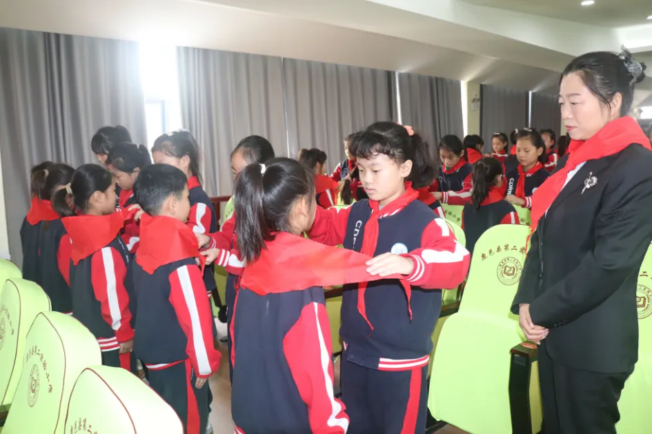 儀式上,該校副校長肖東旭宣布新隊員名單,230名同學加入中國少年先鋒隊,成為一名光榮的少先隊員。緊接著,四年級優(yōu)秀隊員代表莊重地為新隊員代表系上鮮艷的紅領(lǐng)巾。在大隊長的帶領(lǐng)下,全體隊員在隊旗下莊嚴宣誓。少先大隊委員熱烈歡迎新隊員加入。