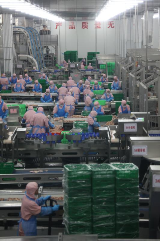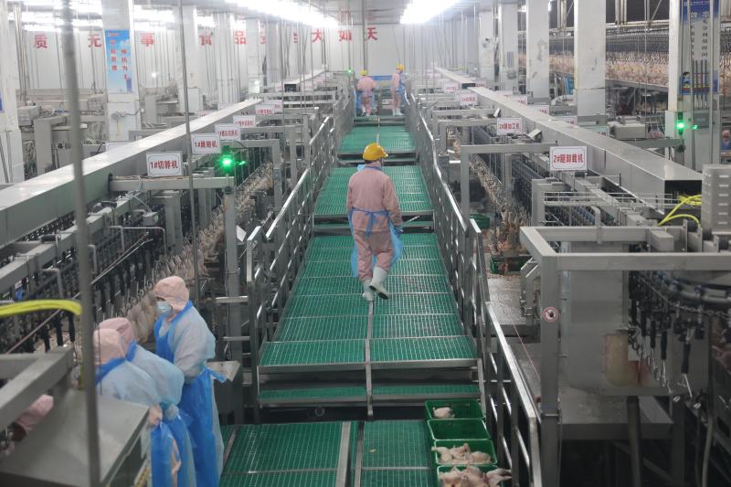 西華雙匯宰雞廠位于西華縣中都路與華安路交叉口東北角,2020年8月份開始施工建設(shè),2022年1月份建成投產(chǎn)。宰雞項(xiàng)目設(shè)計(jì)年屠宰肉雞1億只,雙班雙線生產(chǎn),車速2.5萬只/小時(shí),日宰35萬只,規(guī)劃產(chǎn)品有冰鮮白條雞、雞胸肉、雞腿肉、琵琶腿、雞翅中、雞翅根、雞爪等152個(gè)品種規(guī)格,日產(chǎn)出雞產(chǎn)品875噸,其中鮮品555噸,凍品220噸,地銷、化制和煉油產(chǎn)品100噸,年產(chǎn)出雞產(chǎn)品25萬噸。屠宰的各個(gè)環(huán)節(jié)做到全程監(jiān)控,建立起“三級生物安全防控措施”,形成從檢測到屠宰等嚴(yán)格過程的控制體系,使屠宰各環(huán)節(jié)不受到污染,實(shí)現(xiàn)高度清潔的全產(chǎn)業(yè)鏈健康屠宰。產(chǎn)品從分割、包裝、入庫到配送、市場銷售整個(gè)過程嚴(yán)格在0-4℃環(huán)境中進(jìn)行,保證雞肉新鮮。