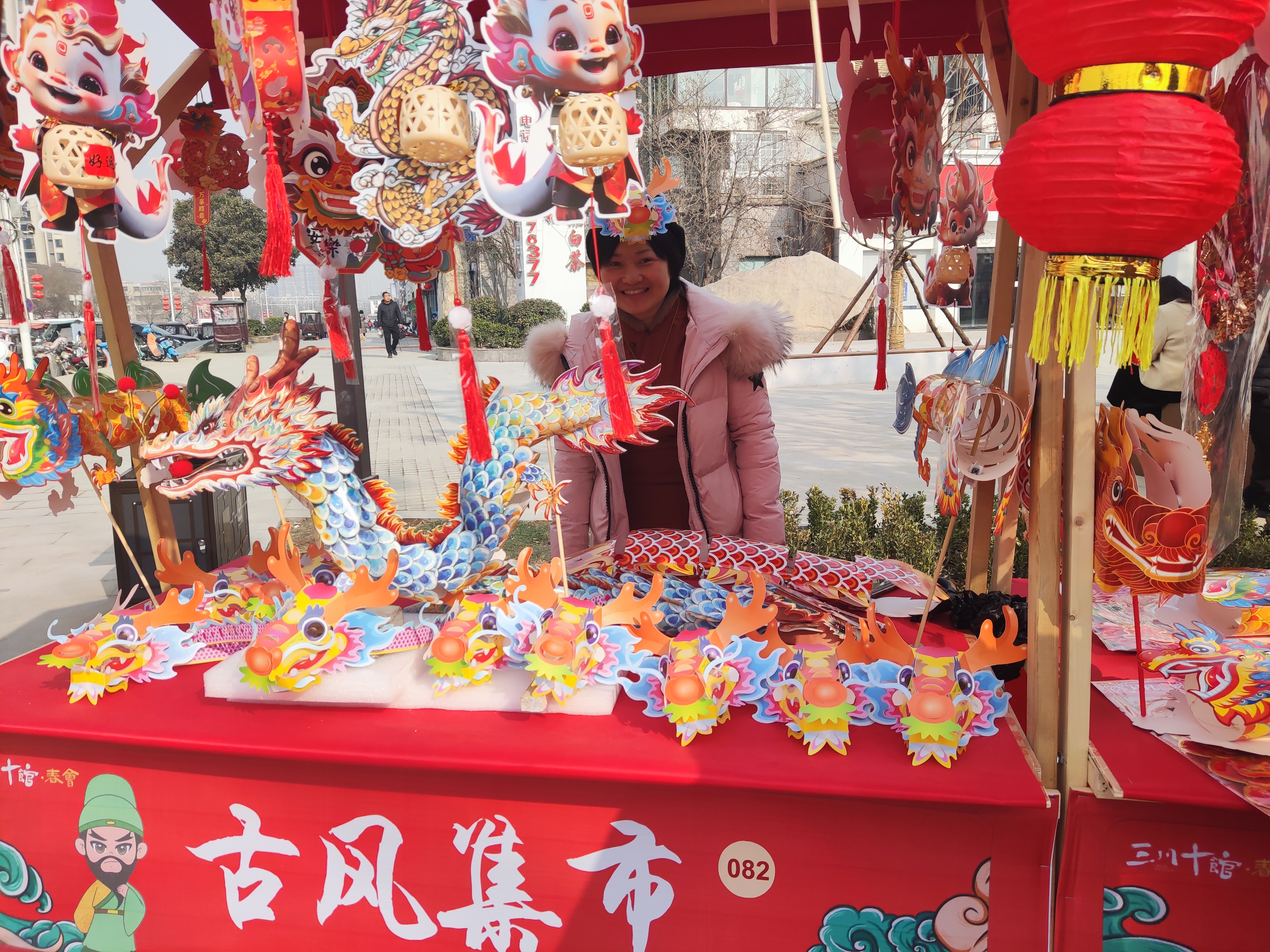 2月12日,關(guān)帝廟歷史街區(qū)的“古風(fēng)集市”上,人來人往、熙熙攘攘,布老虎、泥泥狗、剪紙、糖人等具有周口特色的非遺產(chǎn)品烘托出濃濃的年味,吸引大量游客前來欣賞、購(gòu)買。