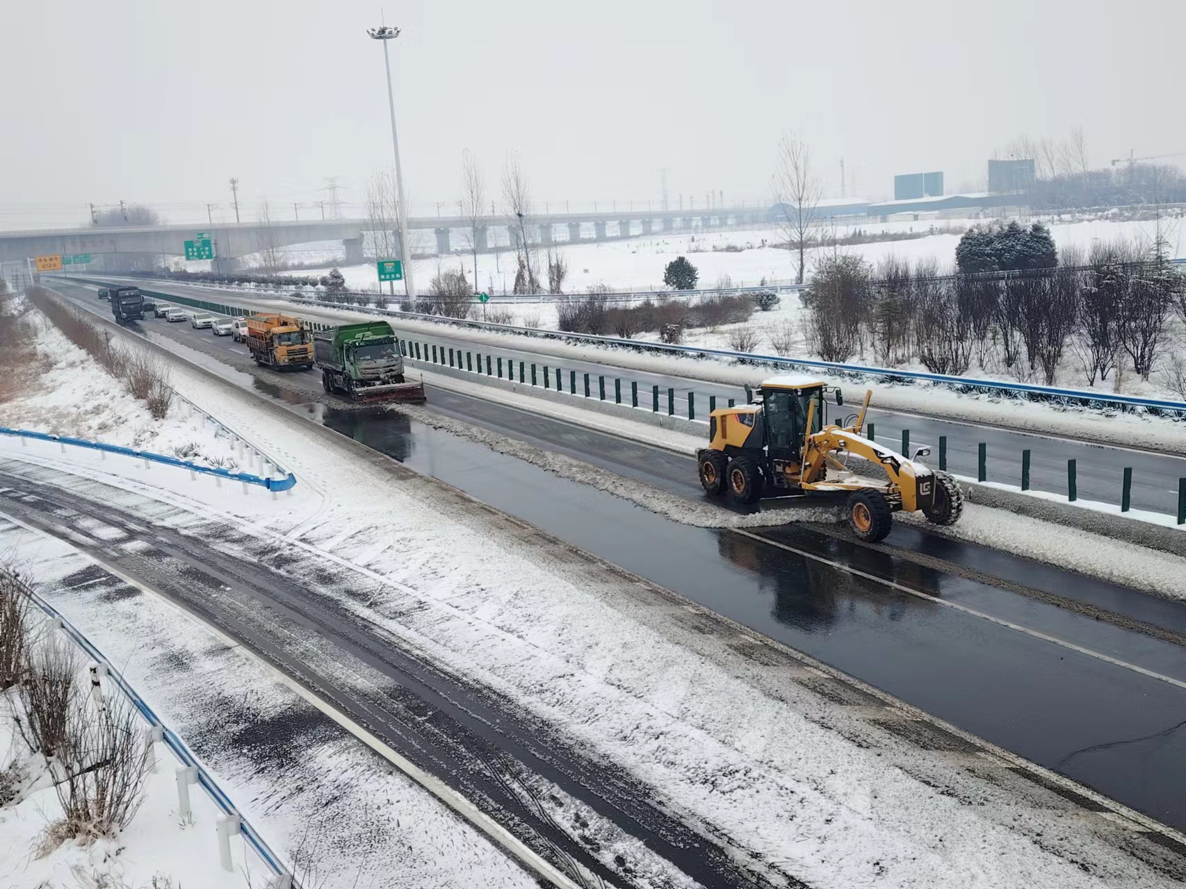 針對“小、中、大、暴”不同雪情,細(xì)化應(yīng)急預(yù)案,健全“一路一策”保通方案,調(diào)配平地機(jī)、裝載機(jī)、吊車、操作手等設(shè)備隊伍,以“機(jī)械+人工”“單車配雙人+人歇車不歇”“多設(shè)備聯(lián)推”等方式,分別采取前推后撒、梯隊作業(yè)、雙向?qū)﹂_等除雪作業(yè),晝夜循環(huán)全線撒布融雪劑;科學(xué)渠化車道,增加混合車道、變換潮汐車道、配置手持收費(fèi)終端,保障收費(fèi)站口車輛快速通行;加強(qiáng)與高速交警、氣象等部門協(xié)調(diào)聯(lián)動,加強(qiáng)出行安全引導(dǎo)提示,引導(dǎo)公眾合理規(guī)劃出行路線。