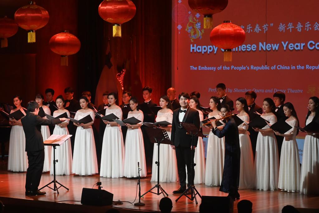 作為西班牙馬德里“歡樂春節(jié)”系列慶祝活動的一部分,“中國新春音樂會”日前在馬德里國家音樂廳舉行。從《陽關三疊》等中國詩詞合唱作品,到《敖包相會》《茉莉花》等中國民歌,再到《飲酒歌》等西方音樂選段,深圳歌劇舞劇院合唱團與民樂演奏家合力獻上一臺融合中西經(jīng)典曲目的音樂會。