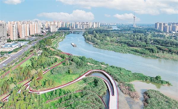 波光粼粼的河面、構(gòu)思巧妙的景觀游園,市民漫步在沙潁河城區(qū)段兩岸濱河公園里,抬眼花木蔥蘢,遠(yuǎn)眺如詩(shī)如畫,健身步道、親水觀景臺(tái),一步一景讓人陶醉。(記者 李瑞才 攝)