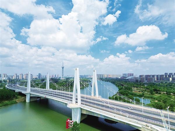 7月25日,藍天白云映襯下,周口市七一路跨沙潁河大橋以“揚帆出海”的獨特造型,生動展現(xiàn)了這座中原港城的雄心。作為河南“豫貨出?!钡臉蝾^堡,周口正肩負起港口型國家物流樞紐承載城市的重任,推動“經(jīng)濟通道”邁向“通道經(jīng)濟”,實現(xiàn)高質(zhì)量發(fā)展。