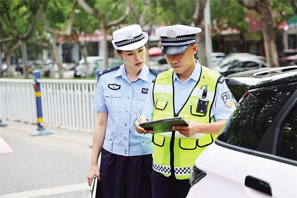 王建峰和徐峰一直頂著烈日在現(xiàn)場(chǎng)處理事故,他們?cè)谇妩c(diǎn)被撞的電動(dòng)車時(shí),有位車主趕來(lái)看到自己的電動(dòng)車被撞變形,急得直跳腳。王建峰耐心解釋:“您先登記信息,責(zé)任劃分后,會(huì)按損失賠償。”車主看著汗流浹背的民警怒氣漸漸消了:“麻煩你們了。”