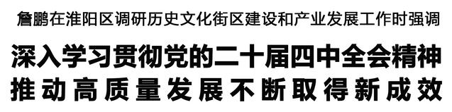 本報(bào)訊 (記者 李鳳霞 何晴) 10月29日,市長(zhǎng)詹鵬到淮陽(yáng)區(qū)調(diào)研歷史文化街區(qū)建設(shè)和產(chǎn)業(yè)發(fā)展工作,強(qiáng)調(diào)要深入學(xué)習(xí)貫徹黨的二十屆四中全會(huì)精神,扎實(shí)推進(jìn)產(chǎn)業(yè)高質(zhì)量發(fā)展,鞏固壯大實(shí)體經(jīng)濟(jì)根基,奮力譜寫中原大地推進(jìn)中國(guó)式現(xiàn)代化周口新篇章。張建黨、王文峰參加調(diào)研。