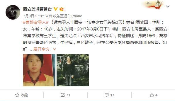 西安17歲女孩乘汽車上學失聯(lián) 家人心急如焚