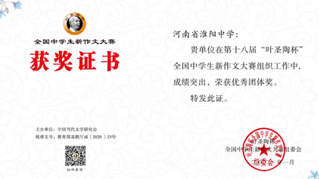 [淮陽]高三學(xué)生榮獲“葉圣陶杯”全國作文大賽一等獎(jiǎng)
