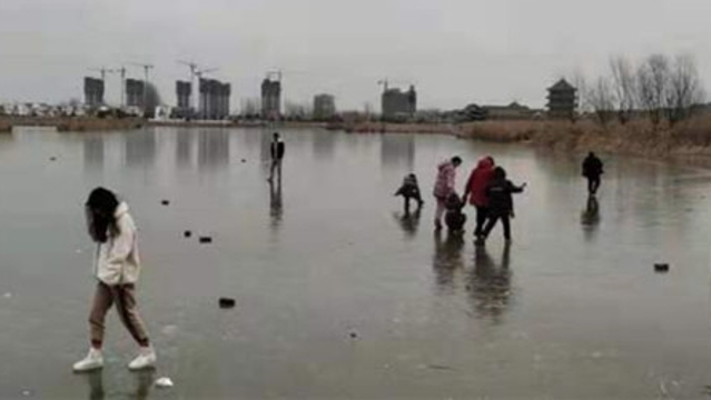 [淮陽]市民體驗新鮮冰上走 龍湖執(zhí)法隊員及時勸離