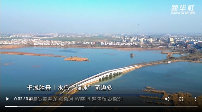 【主流媒體看周口】千城勝景丨水鳥“溜冰”萌趣多