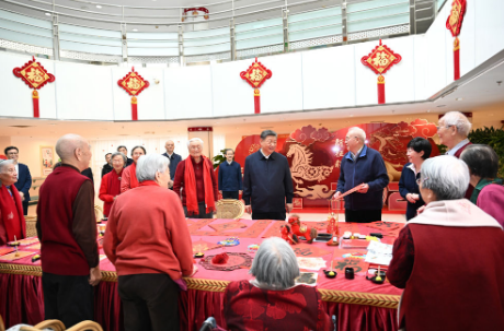 春節(jié)前夕,中共中央總書記、國(guó)家主席、中央軍委主席習(xí)近平等黨和國(guó)家領(lǐng)導(dǎo)人分別看望或委托有關(guān)方面負(fù)責(zé)同志看望了胡錦濤、朱镕基、李瑞環(huán)、溫家寶、賈慶林、張德江、俞正聲、栗戰(zhàn)書、汪洋、宋平、李嵐清、曾慶紅、吳官正、李長(zhǎng)春、羅干、賀國(guó)強(qiáng)、劉云山、王岐山、張高麗和田紀(jì)云、遲浩田、王樂泉、王兆國(guó)、回良玉、劉淇、吳儀、曹剛川、曾培炎、王剛、劉延?xùn)|、李源潮、馬凱、孫春蘭、李建國(guó)、范長(zhǎng)龍、孟建柱、郭金龍、王晨、劉鶴、楊潔篪、楊曉渡、陳全國(guó)、郭聲琨、王漢斌、何勇、杜青林、趙洪祝、尤權(quán)、李鐵映、許嘉璐、蔣正華、顧秀蓮、盛華仁、路甬祥、華建敏、陳至立、司馬義·鐵力瓦爾地、蔣樹聲、王勝俊、陳昌智、嚴(yán)雋琪、張平、向巴平措、張寶文、曹建明、張春賢、吉炳軒、艾力更·依明巴海、萬鄂湘、陳竺、白瑪赤林、唐家璇、戴秉國(guó)、常萬全、趙克志、韓杼濱、賈春旺、宋健、胡啟立、王忠禹、李貴鮮、郝建秀、徐匡迪、張懷西、李蒙、廖暉、白立忱、陳奎元、阿不來提·阿不都熱西提、李兆焯、黃孟復(fù)、張梅穎、張榕明、錢運(yùn)錄、孫家正、李金華、鄭萬通、鄧樸方、厲無畏、陳宗興、王志珍、韓啟德、林文漪、羅富和、李海峰、陳元、周小川、王家瑞、齊續(xù)春、馬培華、劉曉峰、王欽敏、張慶黎、劉奇葆、董建華、萬鋼、盧展工、王正偉、馬飚、陳曉光、楊傳堂、李斌、汪永清、辜勝阻、劉新成等老同志,向他們致以誠(chéng)摯的節(jié)日問候,衷心祝愿他們新春愉快、健康長(zhǎng)壽。