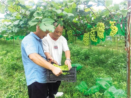 近日,鹿邑縣衛(wèi)真街道谷堆洼社區(qū)華恩種植合作社的葡萄園迎來(lái)采摘期。翠綠的藤蔓間,一串串飽滿圓潤(rùn)、色澤誘人的葡萄綴滿枝頭,在陽(yáng)光下熠熠生輝,猶如綠色寶石般璀璨奪目,散發(fā)出誘人的果香,令人垂涎欲滴。