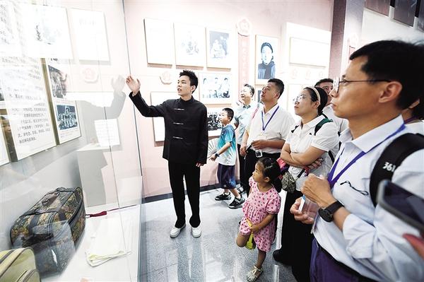 7月20日,講解員在介紹申鳳梅大師生平。當(dāng)日是著名越調(diào)表演藝術(shù)家申鳳梅逝世30周年紀(jì)念日,不少市民、戲迷來到新建成、開放的申鳳梅越調(diào)藝術(shù)館,感受大師光輝一生,追尋越調(diào)藝術(shù)數(shù)百年的發(fā)展足跡。