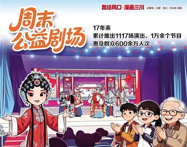 由中共周口市委宣傳部、周口市文化廣電和旅游局主辦,周口市文化館承辦的“周末公益劇場(chǎng)”活動(dòng),17年來(lái)累計(jì)推出1117場(chǎng)演出、1萬(wàn)余個(gè)節(jié)目,惠及群眾600余萬(wàn)人次,培育380支文藝團(tuán)隊(duì)及2000余名文化志愿者?!?/p>