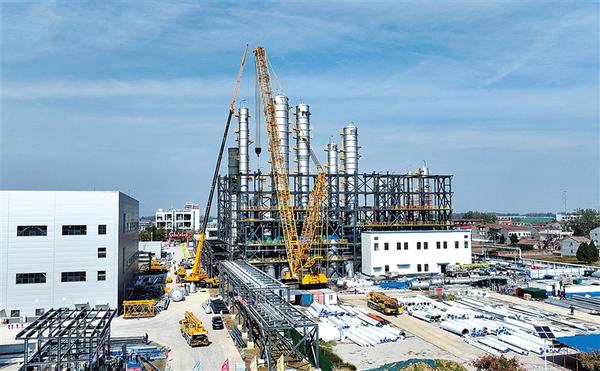 10月24日,在河南金丹乳酸科技股份有限公司年產(chǎn)15萬(wàn)噸聚乳酸項(xiàng)目建設(shè)現(xiàn)場(chǎng),一臺(tái)800噸級(jí)塔吊正在繁忙作業(yè)。