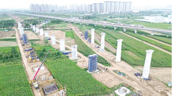 9月21日上午,在平漯周高鐵接入高鐵周口東站的施工現(xiàn)場,中鐵十局的工人正緊張施工。據(jù)了解,該項目將通過新建三條軌道接入高鐵周口東站,屆時,高鐵周口東站將升級成為四條軌道并行的高鐵樞紐站。