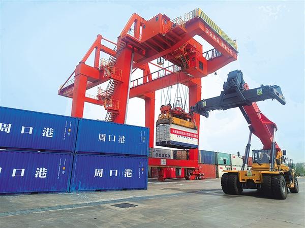 5月17日,“國控·首航號(hào)”集裝箱貨船從周口中心港范營作業(yè)區(qū)起航,將我省生產(chǎn)的無煙煤運(yùn)往日本。本航班通過“散改集”開創(chuàng)了周口港集裝箱裝煤模式,為煤炭運(yùn)輸方式的創(chuàng)新提供了新思路和新實(shí)踐。