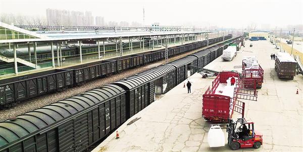 2月22日上午,漯阜鐵路周口站貨場(chǎng)一片繁忙,滿(mǎn)載農(nóng)資的火車(chē)到站卸貨,有力保障了我市農(nóng)業(yè)生產(chǎn)的物資需求。
