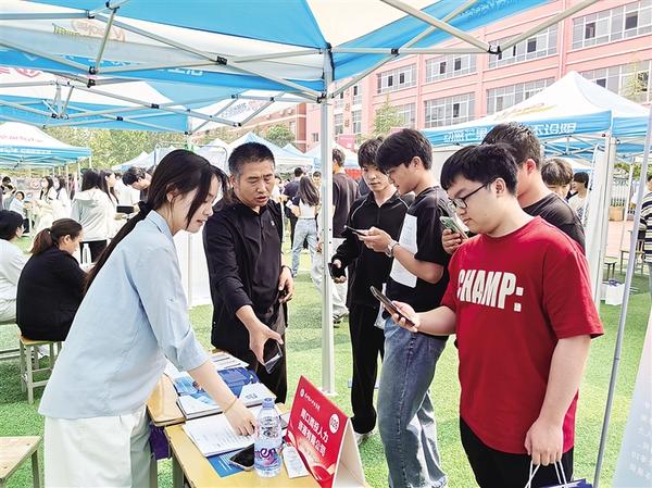 用人單位代表向求職學(xué)生介紹企業(yè)情況。5月15日,周口理工職業(yè)學(xué)院舉辦2025屆畢業(yè)生“雙選會”?;顒又?,求職學(xué)生積極與用人單位代表溝通交流、提交個(gè)人簡歷。用人單位代表耐心解答疑問,介紹公司發(fā)展前景、崗位需求及福利待遇等情況,積極招攬優(yōu)秀人才。