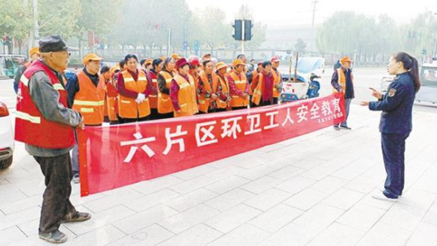 項城市城管局六片區(qū)負(fù)責(zé)人為環(huán)衛(wèi)工人講解安全知識