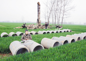 ?、?月23日,扶溝縣大李莊鄉(xiāng)常崗村村民正在田間打井。入春以來,大李莊鄉(xiāng)利用爭取到的資金,大力實施基本農(nóng)田灌溉工程,切實解決部分農(nóng)田地塊的澆灌難題,為奪取夏糧豐收奠定扎實基礎。