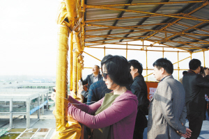 3月29日,參加2015年“5+2”經(jīng)濟(jì)合作活動(dòng)的30多名外地客商集中觀摩川匯區(qū)工業(yè)、商貿(mào)項(xiàng)目,并對(duì)川匯區(qū)亮點(diǎn)紛呈的項(xiàng)目建設(shè)贊譽(yù)有加。圖為外地客商正在拍攝規(guī)模宏大的華耀城項(xiàng)目。理效明 劉巍 攝