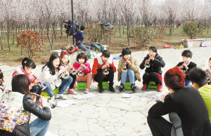 項(xiàng)城市以群眾喜聞樂(lè)見(jiàn)的傳統(tǒng)嗩吶、廣場(chǎng)舞等為載體,大力開(kāi)展群眾性文化體育活動(dòng),使廣大市民精神面貌煥然一新。圖為孩子們?cè)趯W(xué)習(xí)吹奏嗩吶。(張永久 攝)