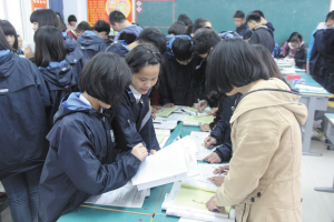 該校將課堂名字定為“求真大課堂”,以“真”字作為學校一切教育教學和管理的衡量標準。朱貴華說,求真就是要真教、真學、真嚴、真愛、真實、真會。為提高課堂教學效果,該校總結出一套獨特的課堂教學方法——“七音和鳴”。分管教學工作的副校長徐其運用“1234567”,即哆來咪發(fā)唆拉西”來詮釋“七音和鳴”法。“1”就是一個學習目標;“2”就是提前兩分鐘進班,布置2個任務(出示目標、檢查學情);“3”就是準備3個本子,即學情檢效本、跟蹤本、糾錯本;“4”是4個維度考評,即高速度、準確度、干凈度、參與度;“5”是5個跟蹤,即節(jié)跟蹤、日跟蹤、周跟蹤、月跟蹤、學期跟蹤,堅持“抓緊跟蹤不放松、我在文昌必成功”的教育信念;“6”是6個環(huán)節(jié),即激情導入、自研自探、合作探究、展示質疑、師生點評、當堂檢測;“7”是7個評價,即教師的教案、學生的學案、練案、觀課記錄的每周業(yè)務評價及對學生的即時性、激勵性、長效性評價。