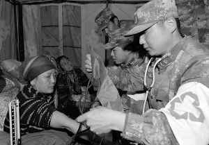 4月27日,西藏軍區(qū)日喀則軍分區(qū)部隊(duì)官兵在為尼泊爾受災(zāi)群眾義診。