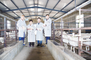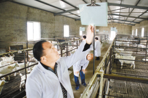 孫振偉原是當(dāng)?shù)刂那嗄昶髽I(yè)家,2008年初被西關(guān)村居民高票選舉為村黨支部書(shū)記,憑著對(duì)家鄉(xiāng)的強(qiáng)烈責(zé)任感和保護(hù)槐山羊特色品種的使命感,孫振偉帶領(lǐng)西關(guān)村立足本村作為槐山羊傳統(tǒng)養(yǎng)殖區(qū)的優(yōu)勢(shì),于2010年成立沈丘縣槐山羊養(yǎng)殖發(fā)展有限公司,在省畜牧展交易會(huì)上,與鄭州鄭源公司合作,共同簽約了投資6000萬(wàn)元建設(shè)槐山羊原種保護(hù)、繁育、深加工項(xiàng)目。同時(shí)與華中農(nóng)大建立技術(shù)合作關(guān)系,投資800萬(wàn)元建成“槐山羊原種保護(hù)和繁育中心”,規(guī)劃設(shè)計(jì)了化驗(yàn)室、消毒室、提純復(fù)壯室、品種基因室等配套規(guī)范設(shè)施,不僅為國(guó)家級(jí)優(yōu)良品種槐山羊的保種提純工作提供了科研平臺(tái)和寶貴數(shù)據(jù)庫(kù),“槐山羊提純復(fù)壯良種繁育技術(shù)研究與應(yīng)用”成果還獲得2013年度周口市科技進(jìn)步一等獎(jiǎng)。經(jīng)過(guò)提純復(fù)壯,目前中心存欄特征明顯的槐山羊母羊860只、種公羊36只,在此基礎(chǔ)上,計(jì)劃建成占地100畝的槐山羊養(yǎng)殖小區(qū),槐山羊板皮、肉制品等深加工項(xiàng)目都已經(jīng)開(kāi)始實(shí)施。 “這些是經(jīng)過(guò)第五輪提純復(fù)壯繁育的槐山羊,目前可以說(shuō)是最純種的槐山羊了?!睂O振偉指著一批剛出生的小羊向我們介紹。